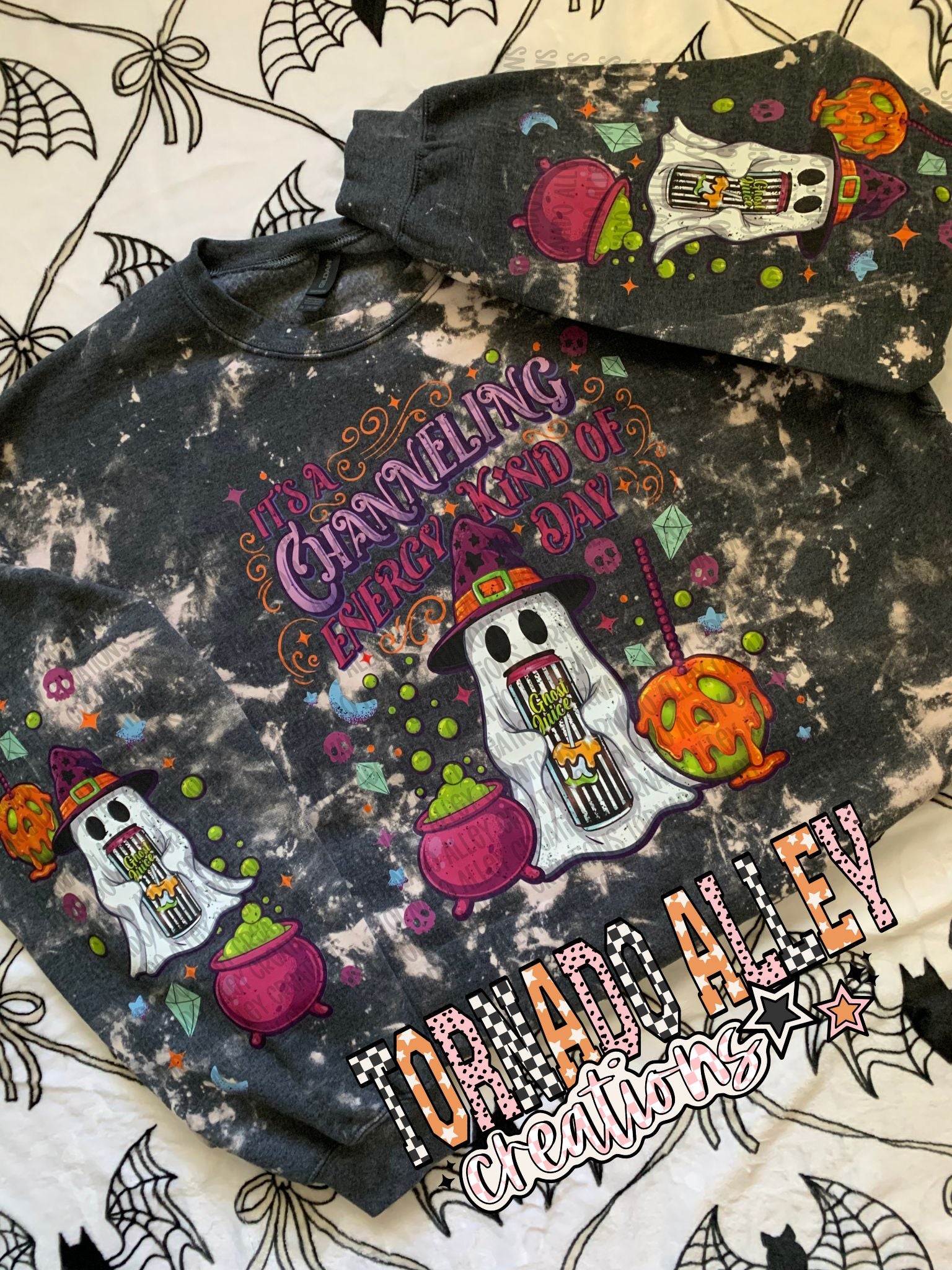 Dark Heather Bleached Unisex Poly/Cotton Crewneck with a DTF transfer.