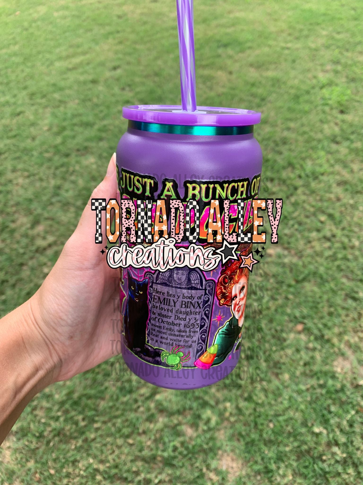 Option of Purple Stainless Steel or Orange Frost Glass 16oz Can
