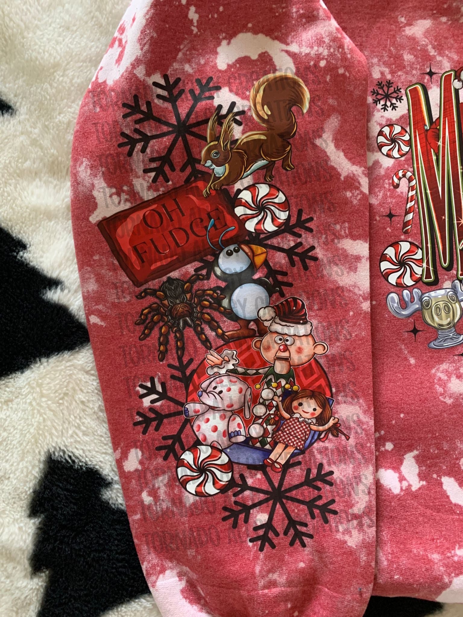 Red Heather Bleached Unisex Poly/Cotton Crewneck with a DTF transfer.