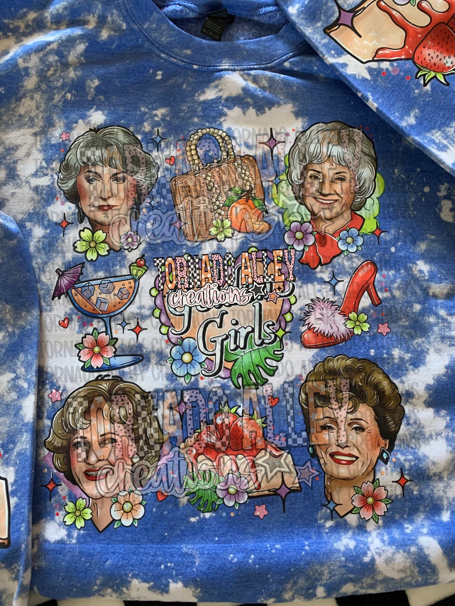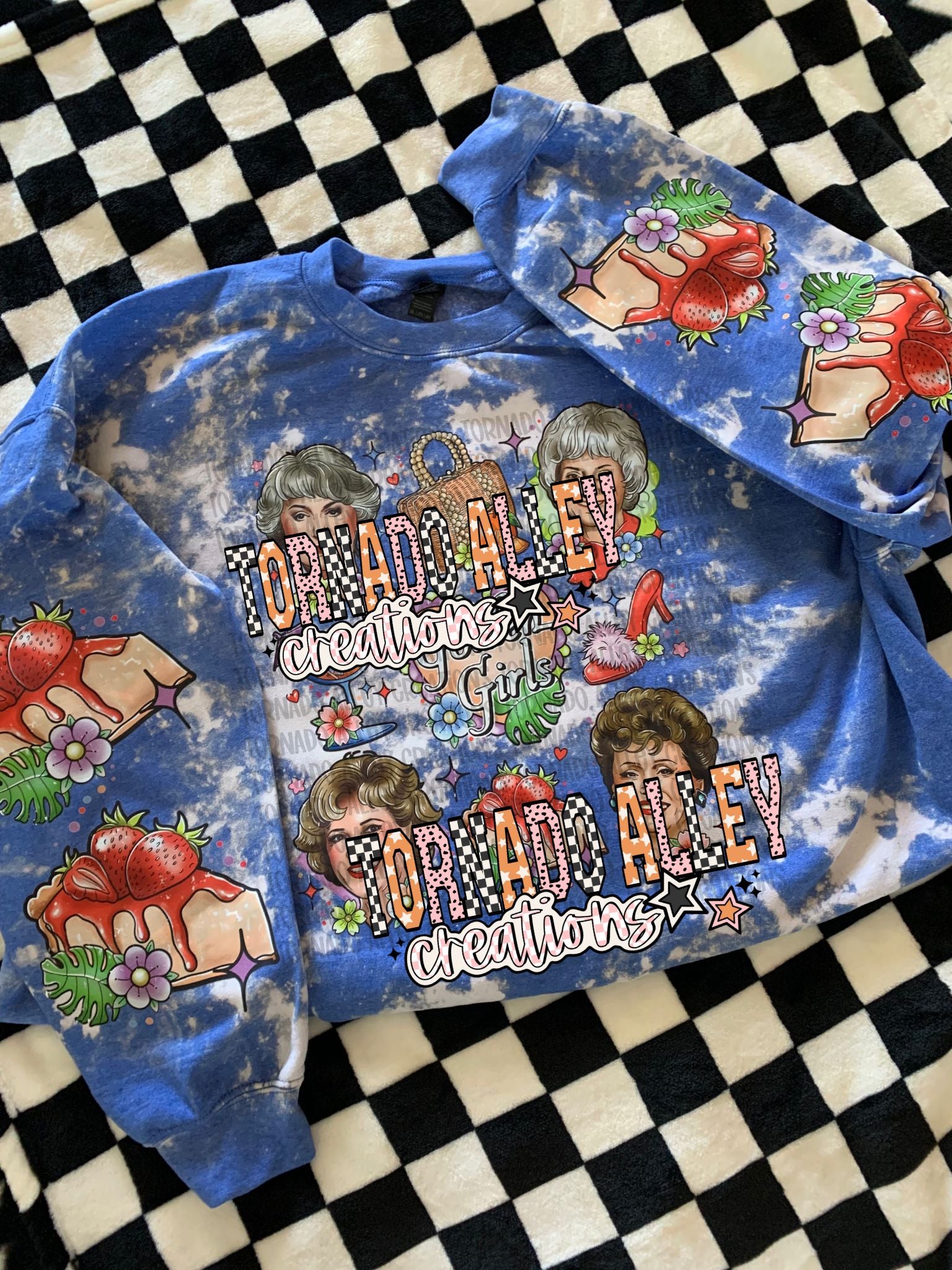 Blue Heather Bleached Unisex Poly/Cotton Crewneck with a DTF transfer.