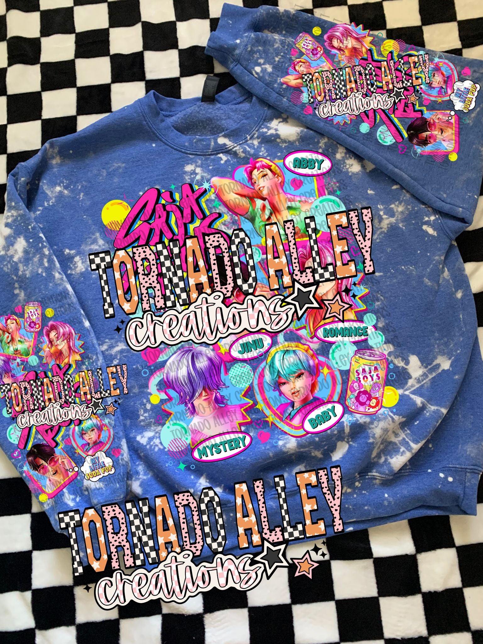 Blue Heather Bleached Unisex Poly/Cotton Crewneck with a DTF transfer.