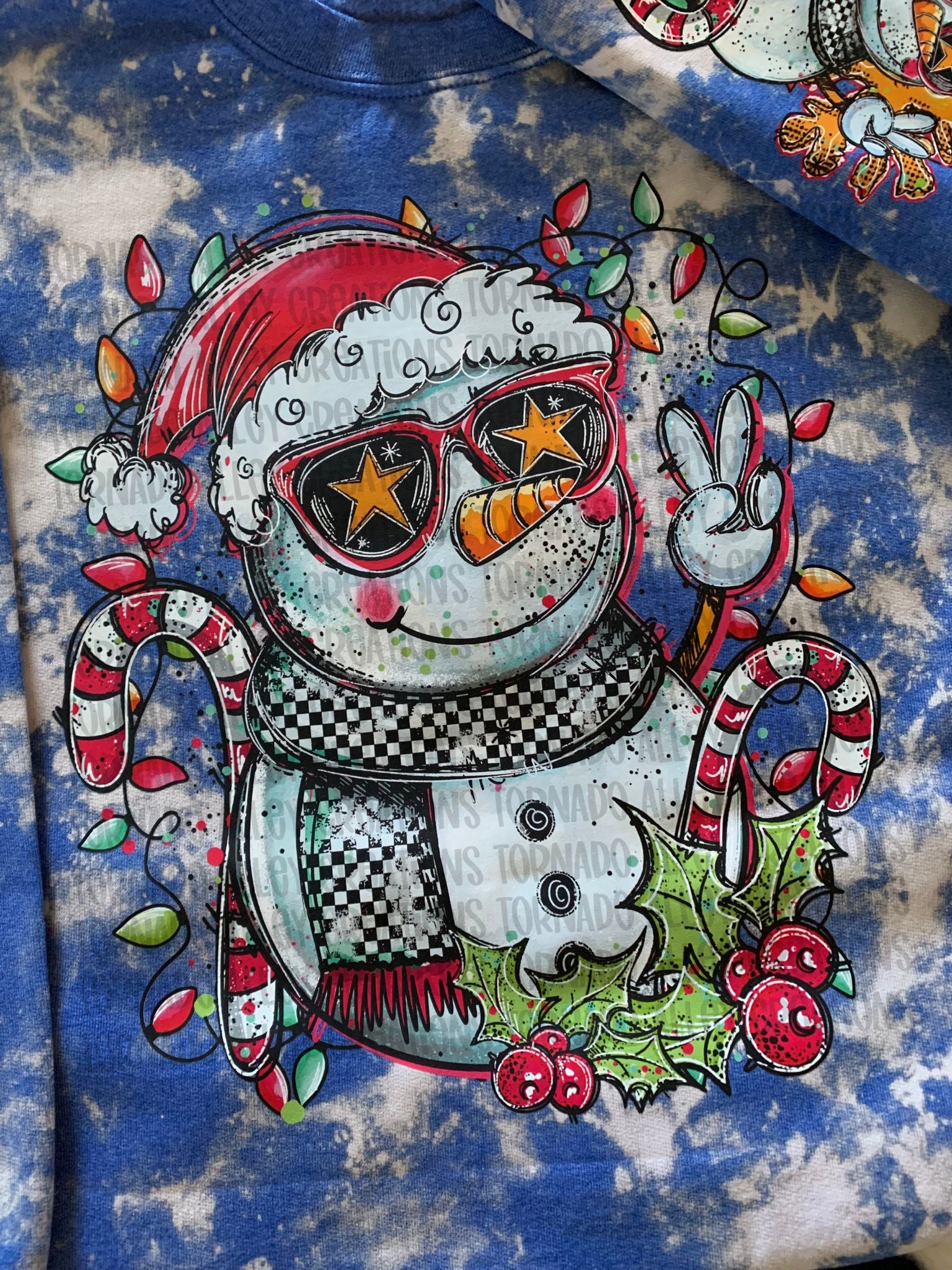 Blue Heather Bleached Unisex Poly/Cotton Crewneck with a DTF transfer.