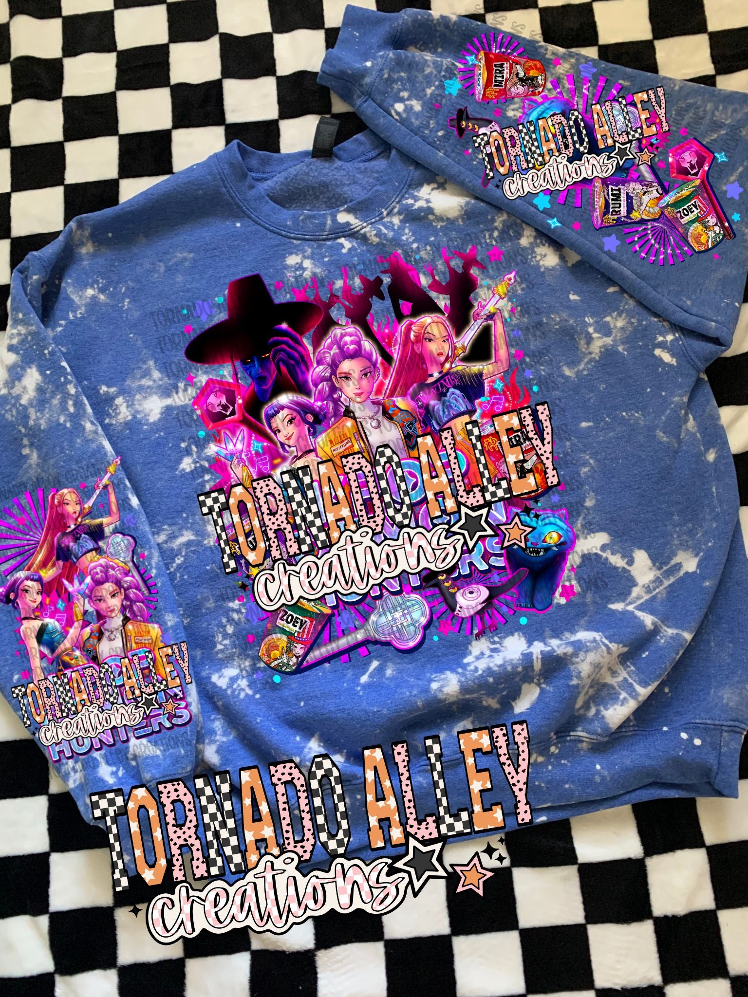 Blue Heather Bleached Unisex Poly/Cotton Crewneck with a DTF transfer.