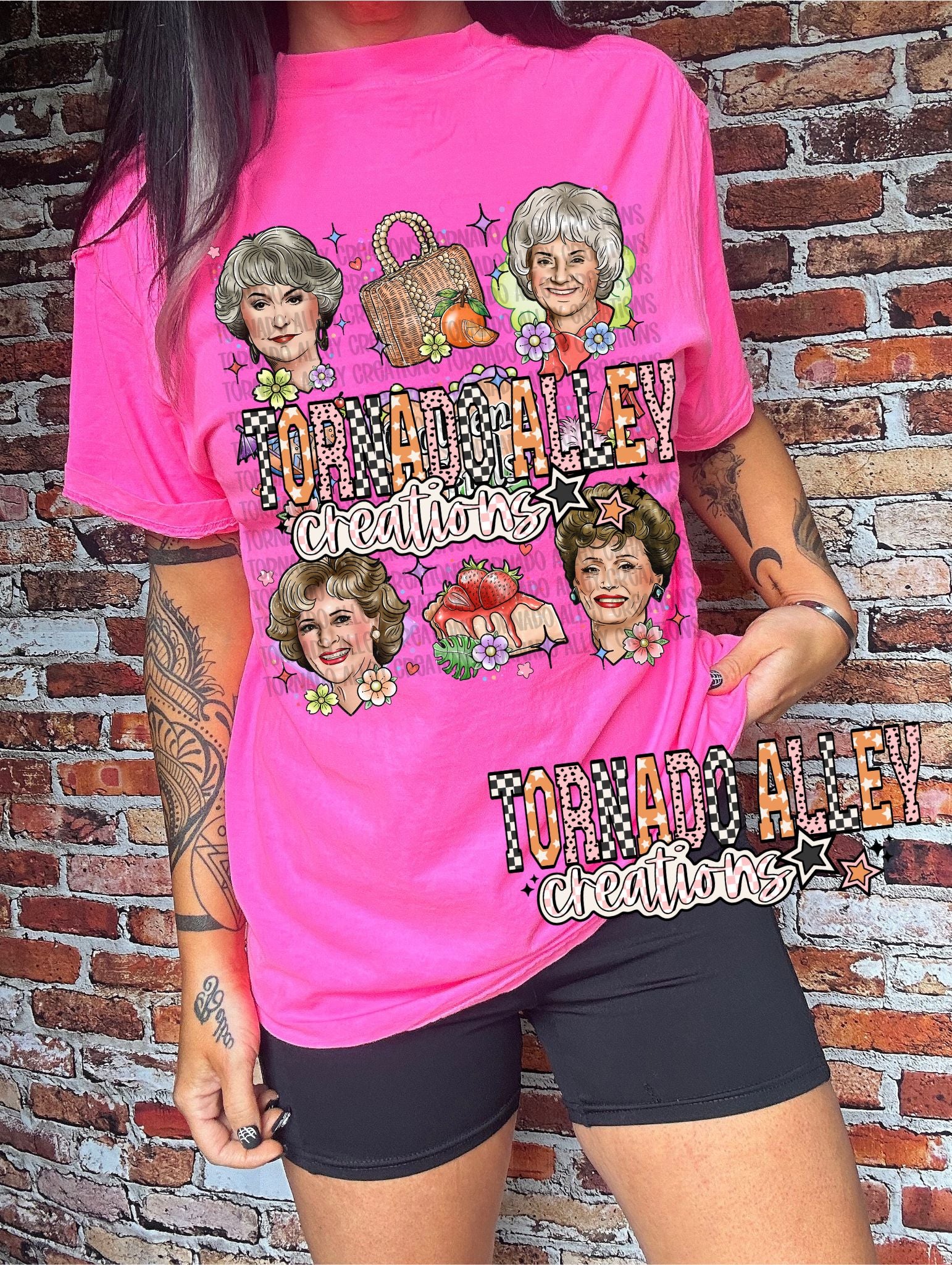 Neon Pink Cotton Comfort Colors Tee with DTF transfer.