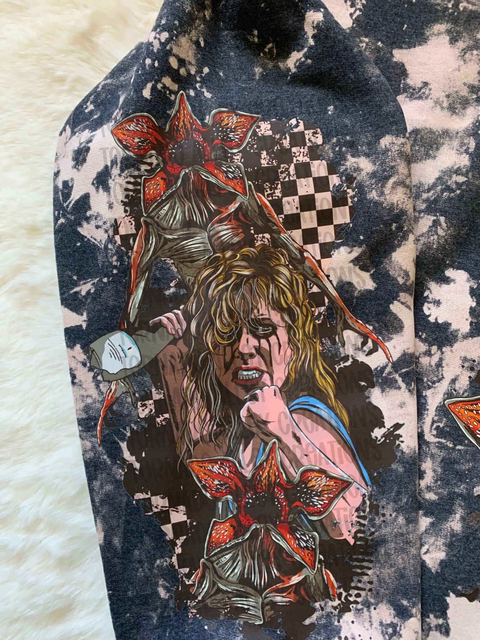 Dark Heather Bleached Unisex Poly/Cotton Crewneck with a DTF transfer.