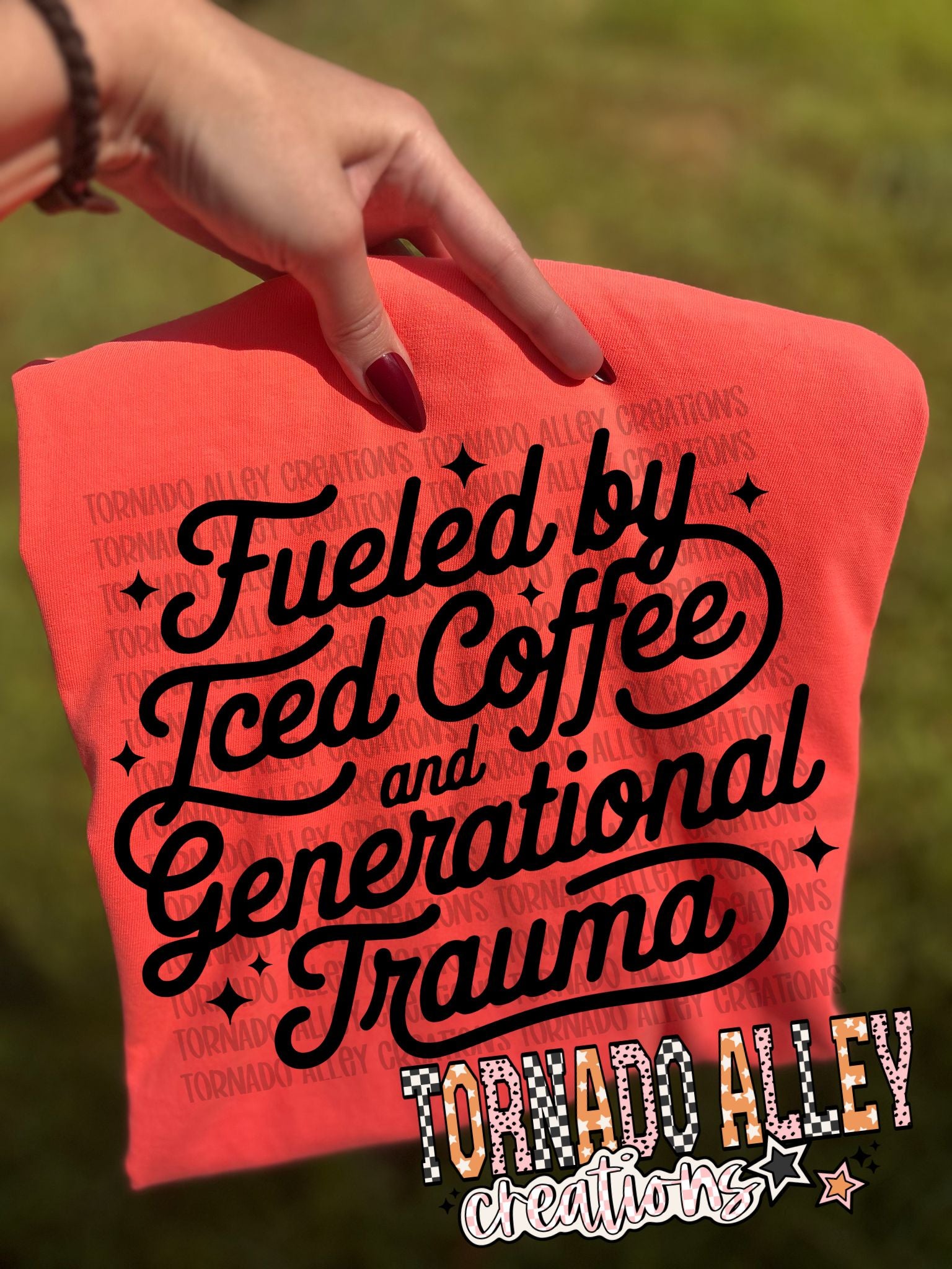 Neon Red Orange Cotton Comfort Colors Tee with DTF transfer.