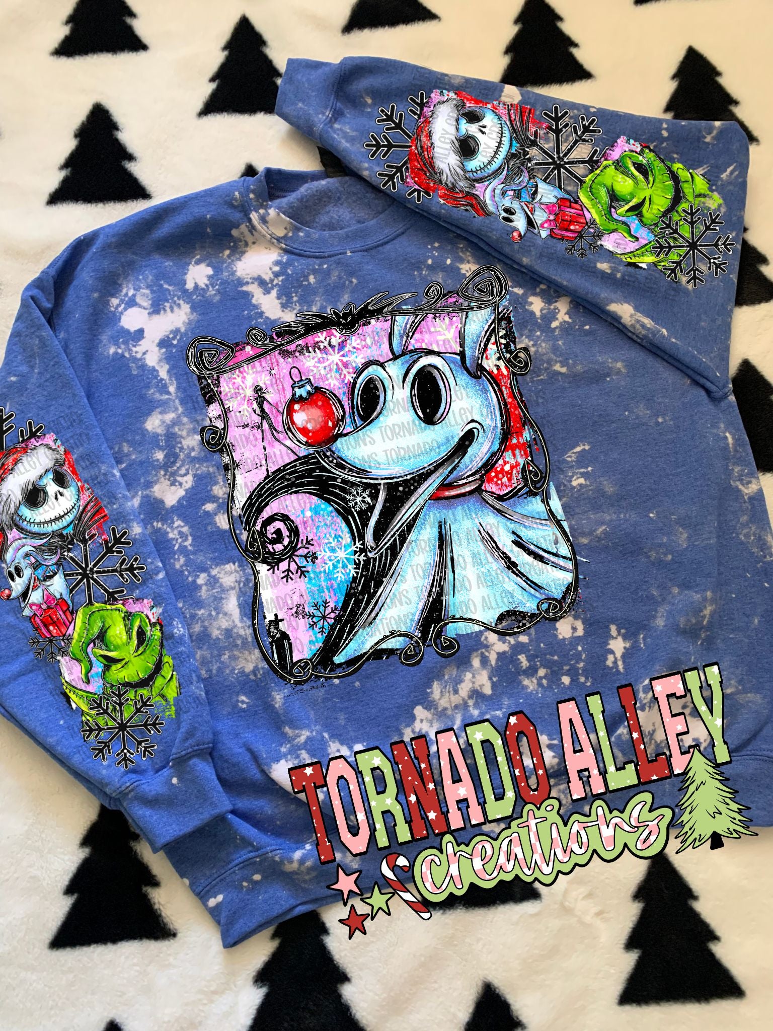 Blue Heather Bleached Unisex Poly/Cotton Crewneck with a DTF transfer.