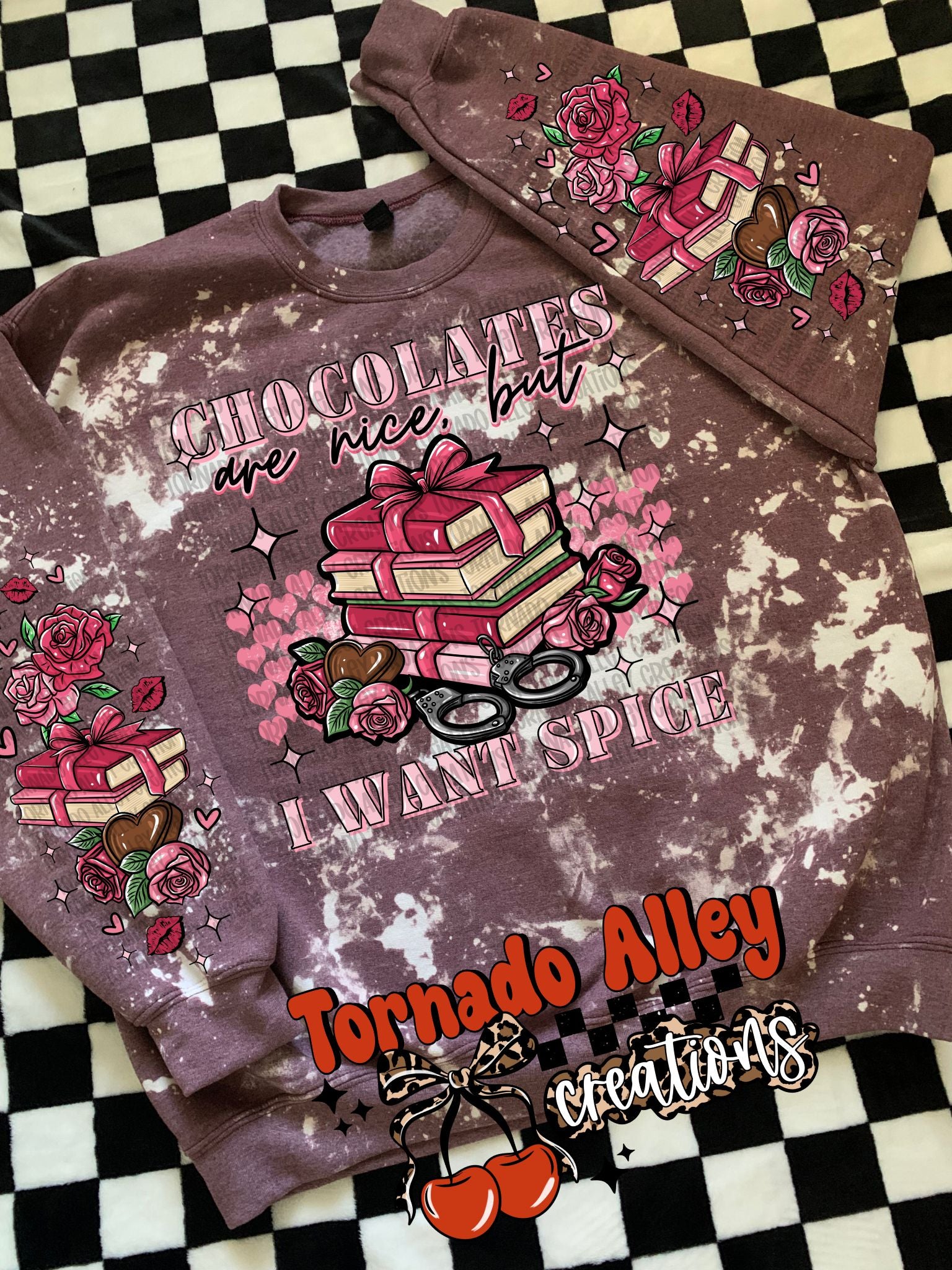 Maroon Heather Bleached Unisex Poly/Cotton Crewneck with a DTF transfer.