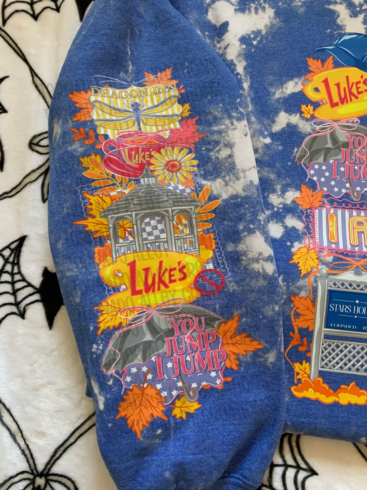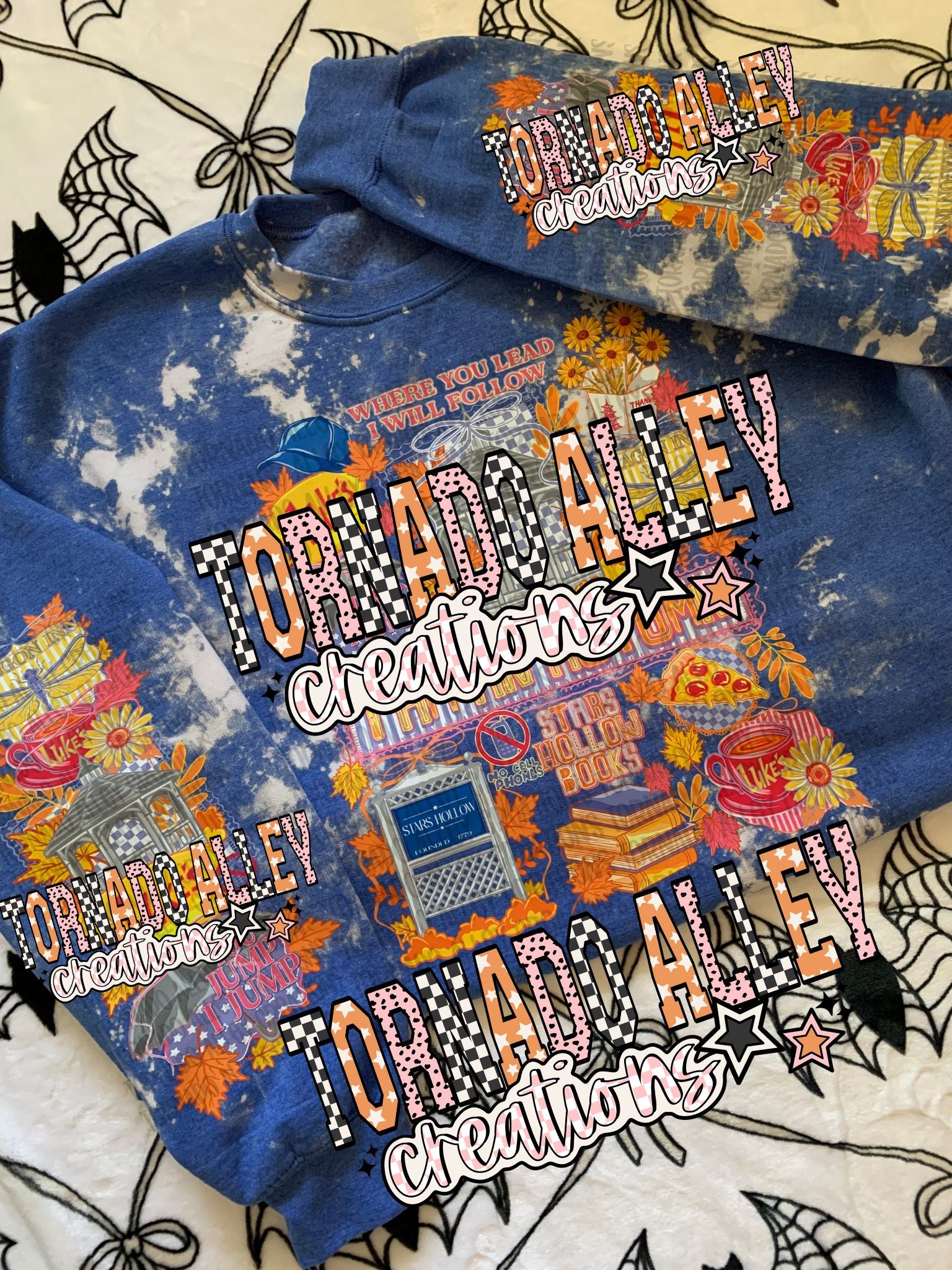 Blue Heather Bleached Unisex Poly/Cotton Crewneck with a DTF transfer.