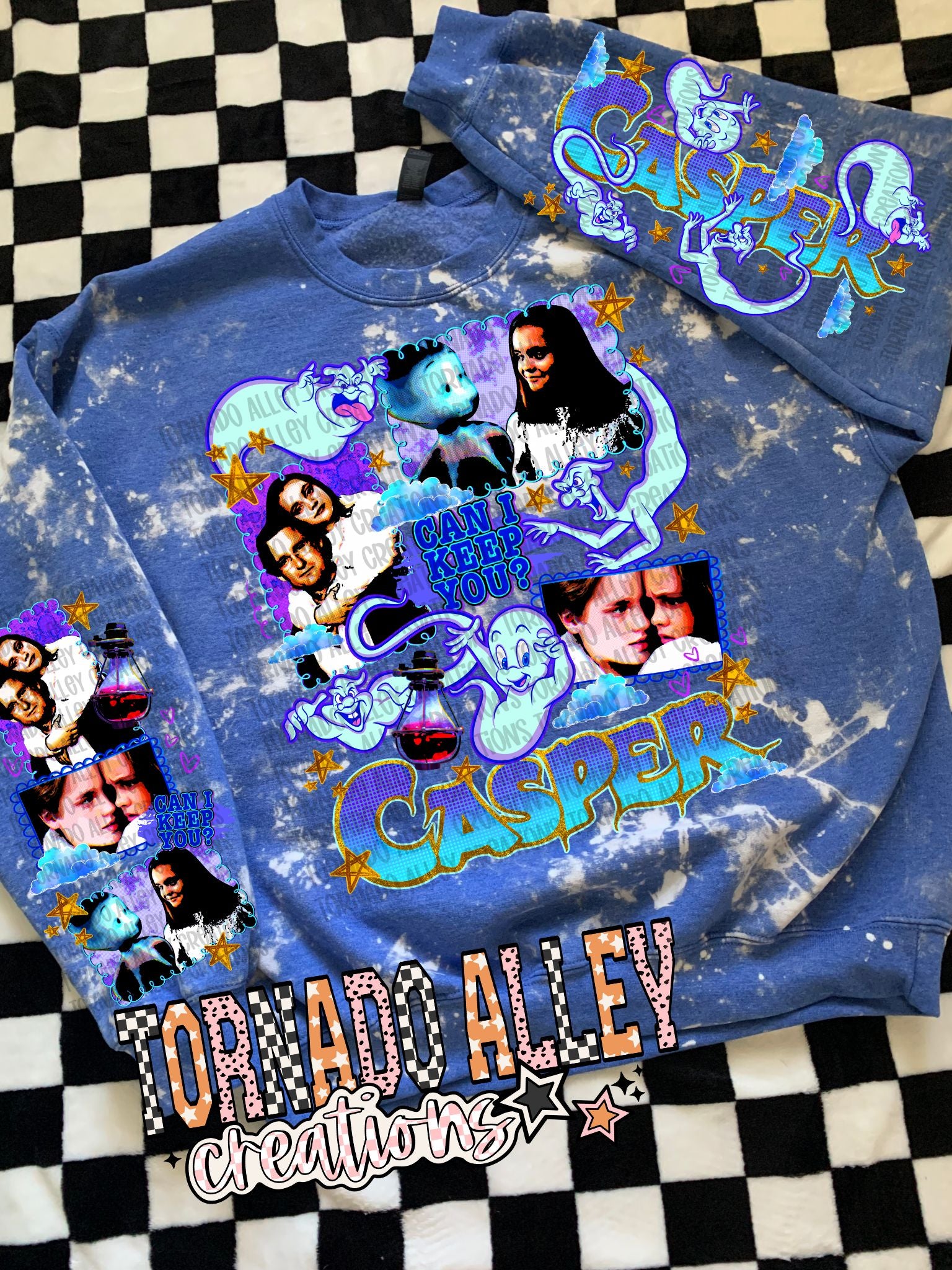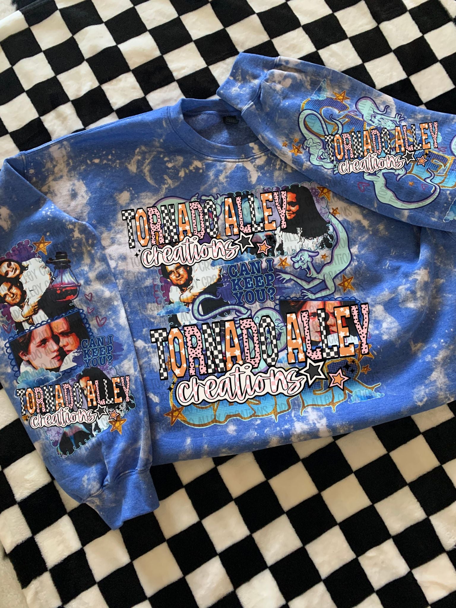 Blue Heather Bleached Unisex Poly/Cotton Crewneck with a DTF transfer.