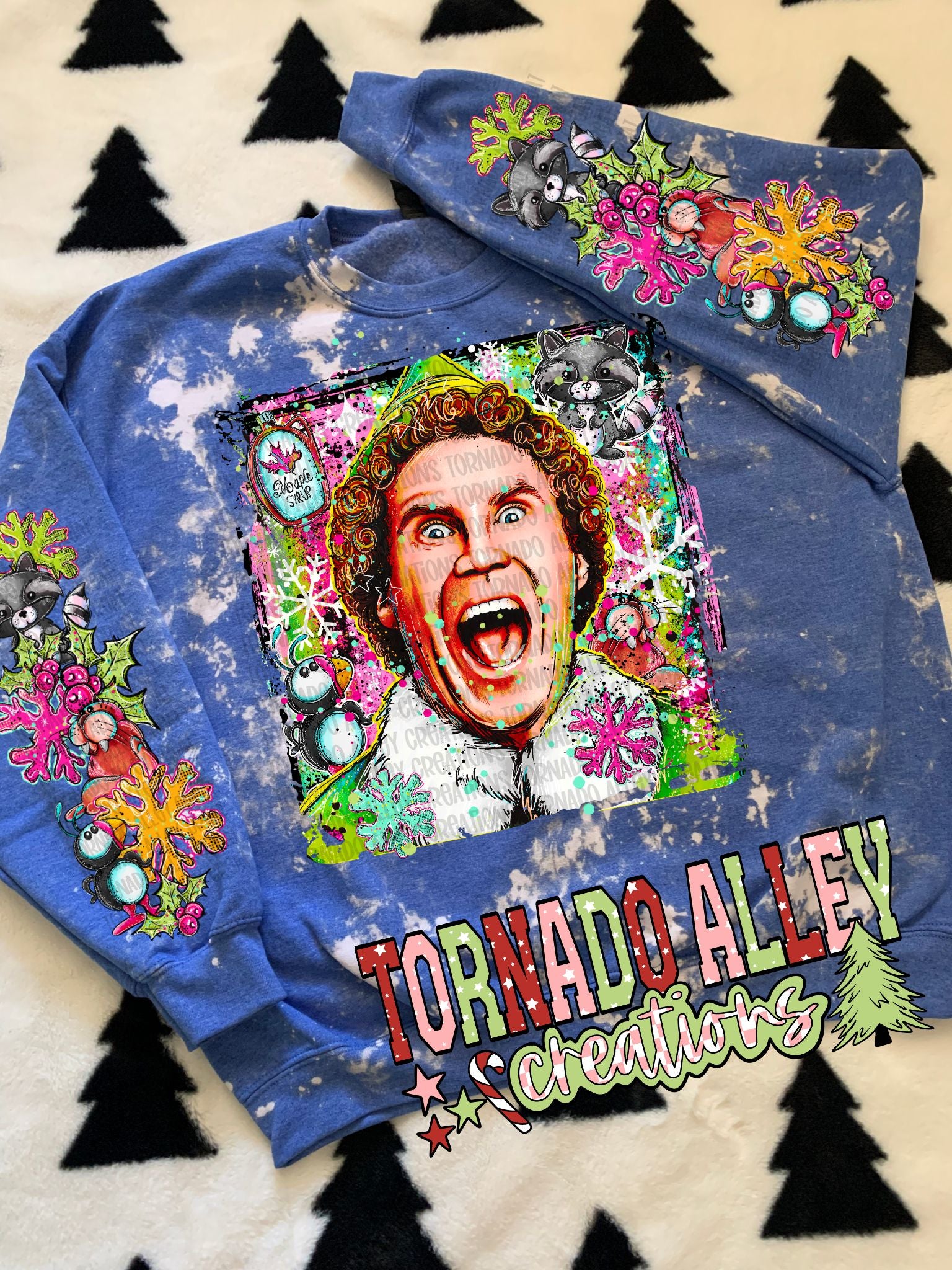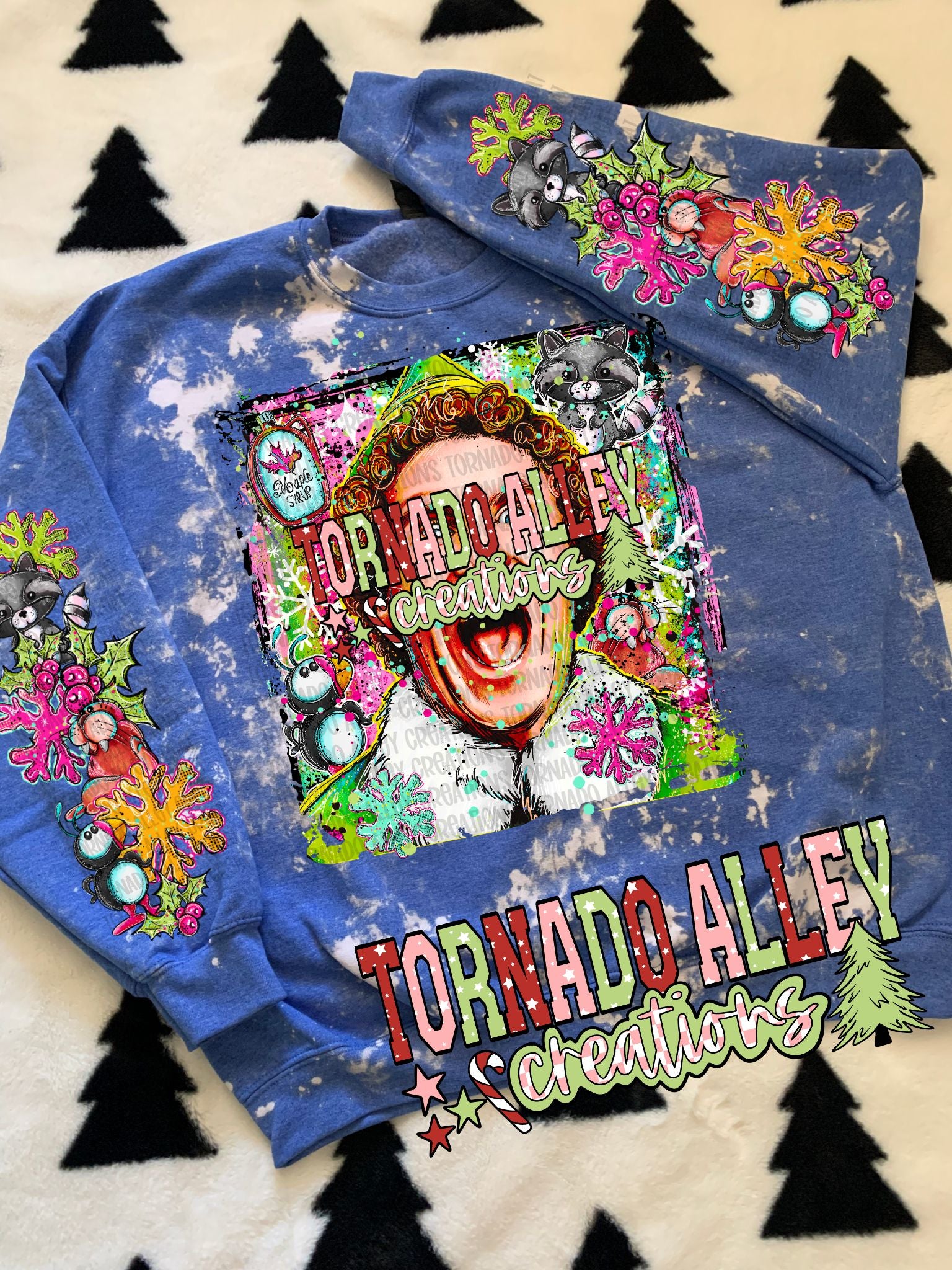 Blue Heather Bleached Unisex Poly/Cotton Crewneck with a DTF transfer.