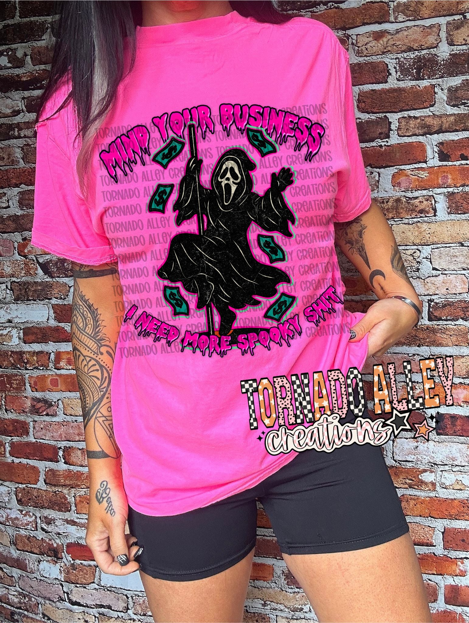 Neon Pink Cotton Comfort Colors Tee with DTF transfer.