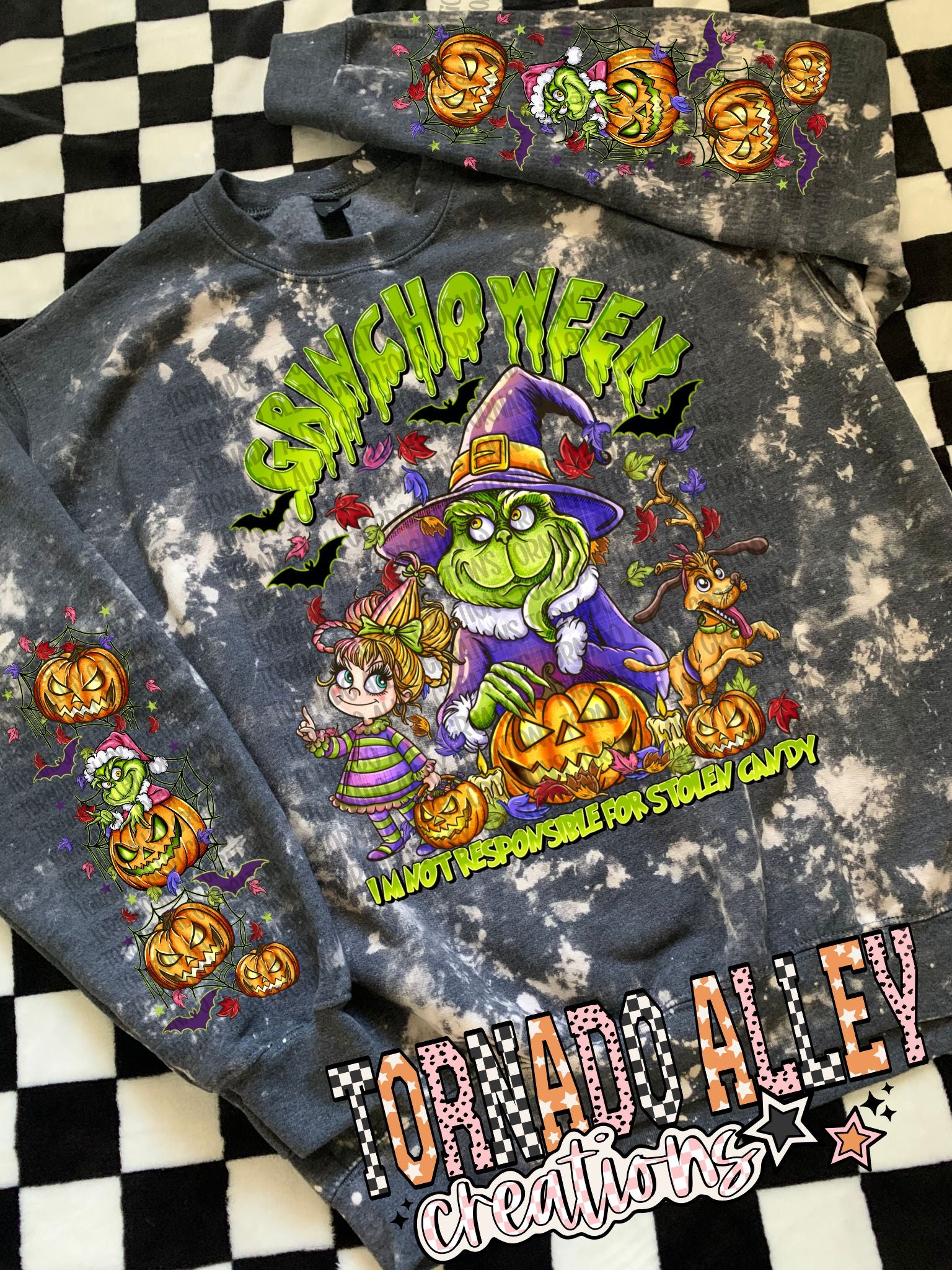 Dark Heather Bleached Unisex Poly/Cotton Crewneck with a DTF transfer.