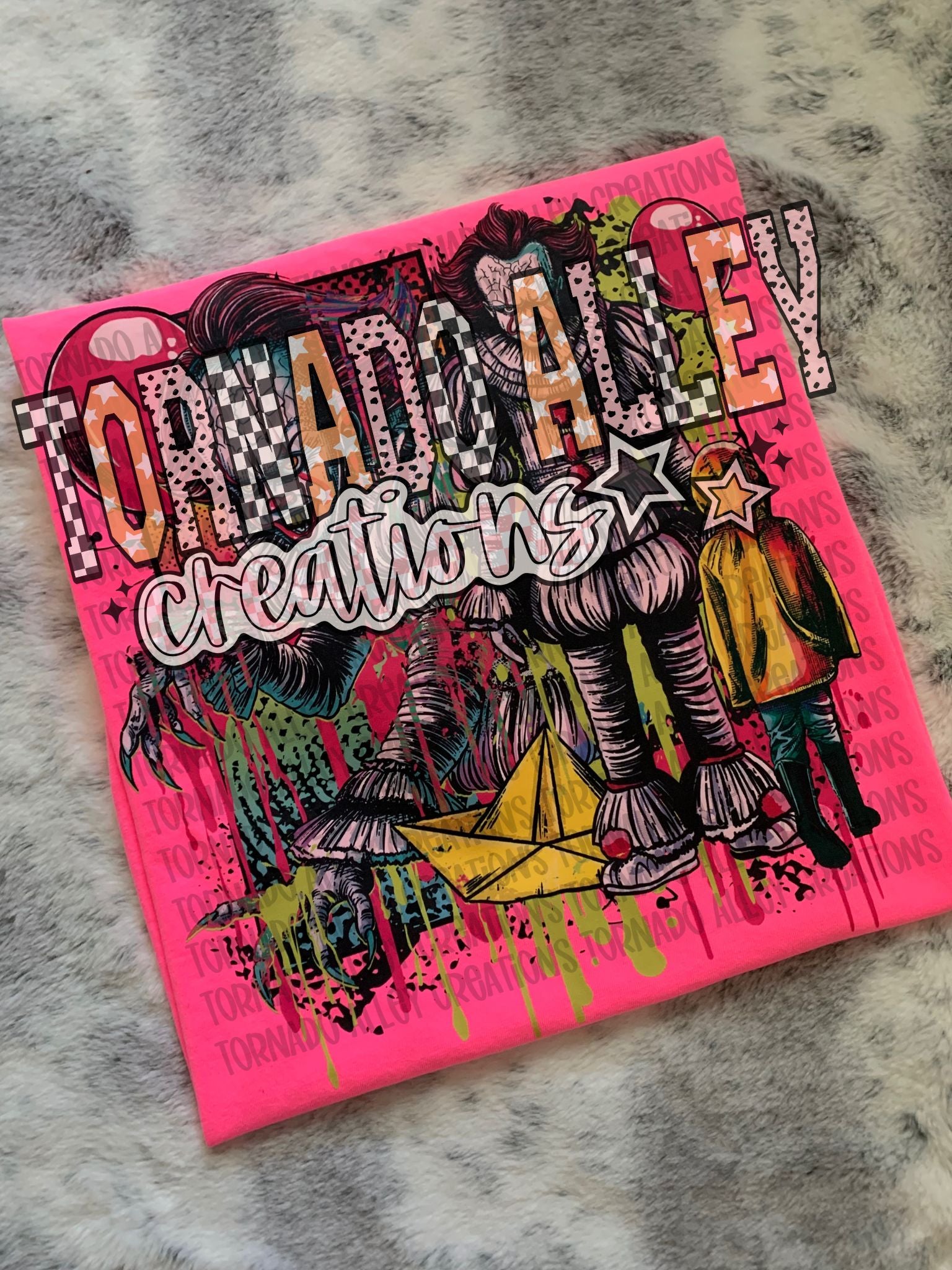 Neon Pink Cotton Comfort Colors Tee with DTF transfer.