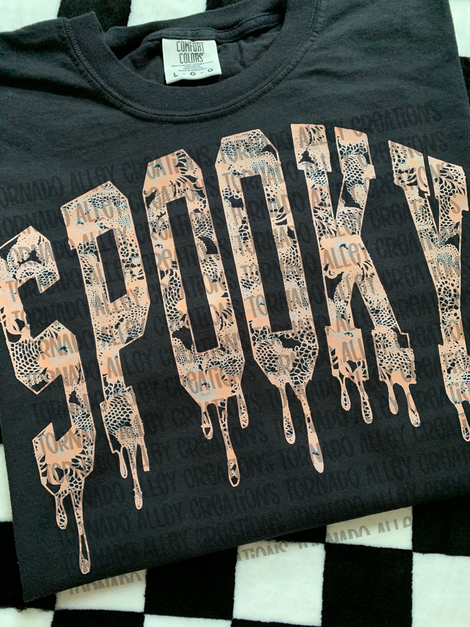 Black Cotton Comfort Colors Tee with DTF transfer.