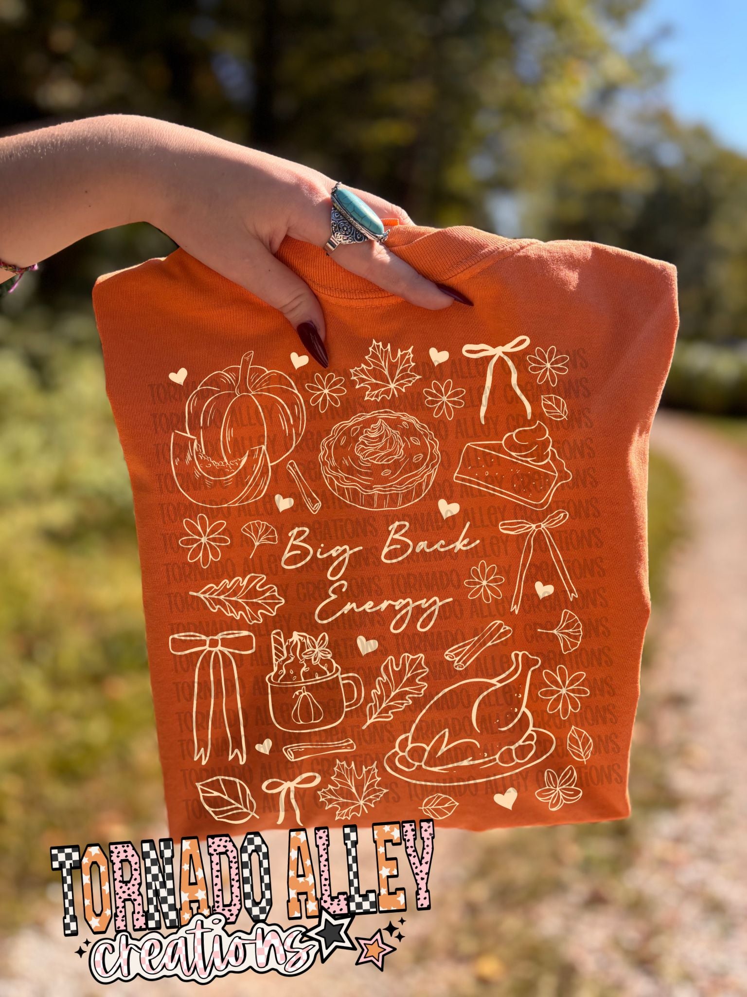 Burnt Orange Cotton Comfort Colors Tee with DTF transfer.