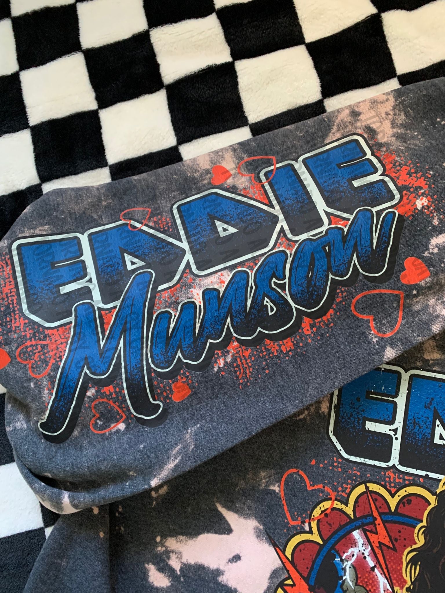 Dark Heather Bleached Unisex Poly/Cotton Crewneck with a DTF transfer.
