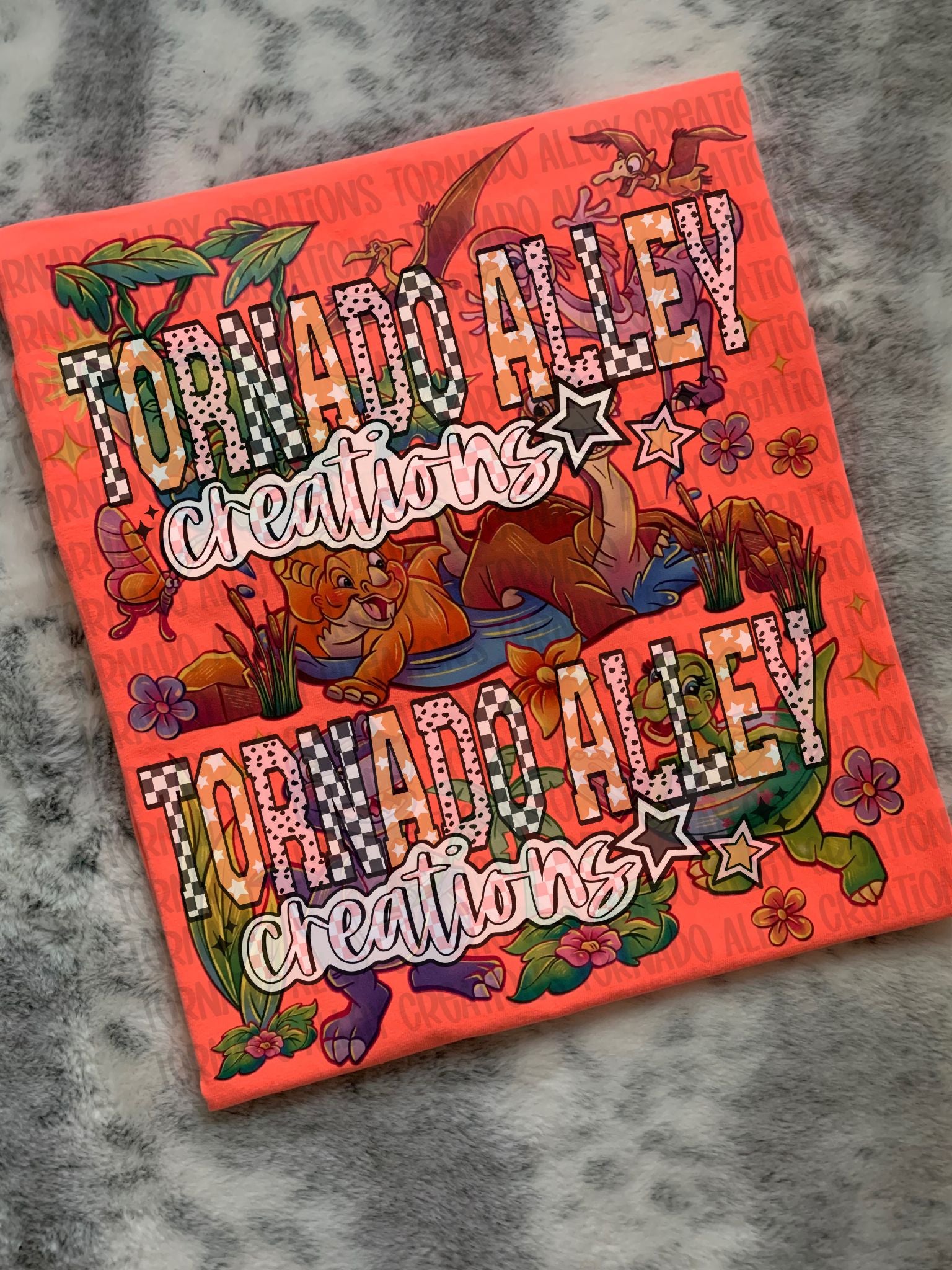 Neon Red Orange Cotton Comfort Colors Tee with DTF transfer.