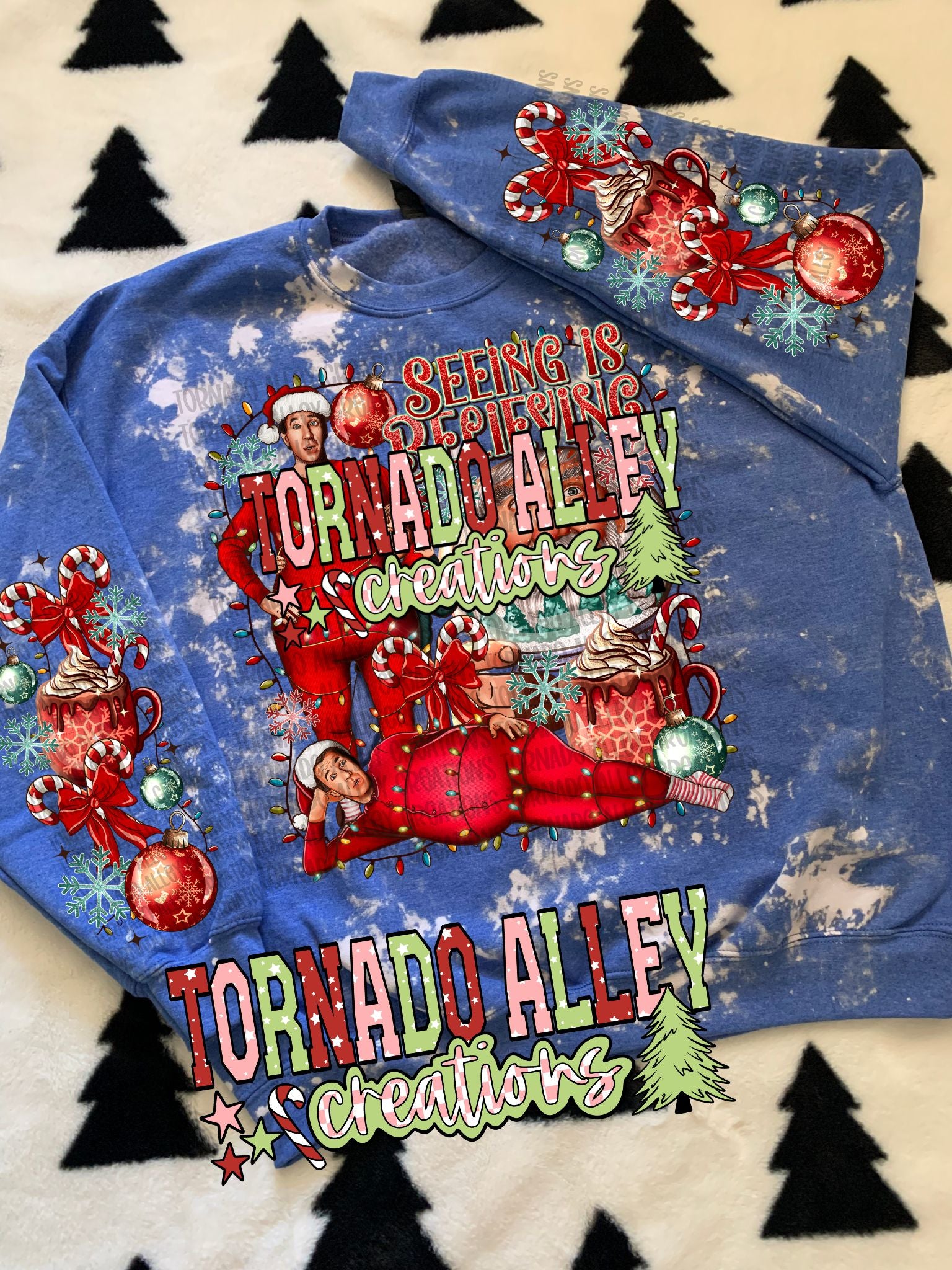 Blue Heather Bleached Unisex Poly/Cotton Crewneck with a DTF transfer.